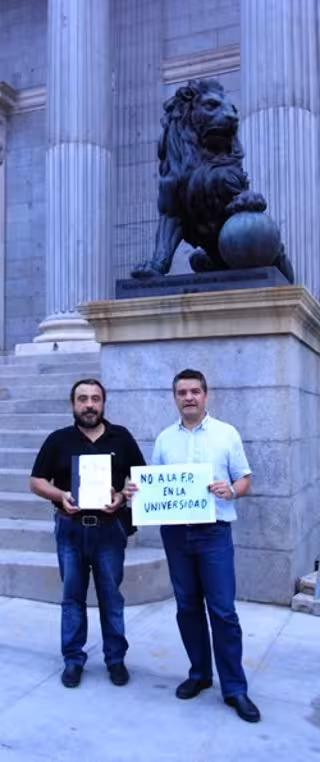 FETE UGT-PV ha presenta las firmas este jueves, cuando se discutía en el pleno del Congreso de los Diputados las enmiendas de devolución al Gobierno del Proyecto de Ley de Economía Sostenible y su Proyecto de Ley Orgánica Complementaria, que finalmente fueron rechazadas por 176 votos frente a 169. La federación sindical inició a finales de 2009 esta campaña de denuncia, cuyo lema es 'No a los ciclos formativos de FP en la Universidad'.