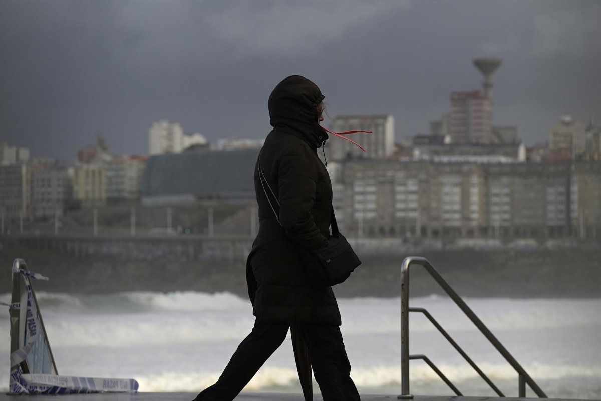 Archivo - Una mujer se cubre con la capucha durante el frente meteorológico, a 23 de febrero de 2024, en A Coruña, Galicia (España). - M. Dylan - Europa Press - Archivo