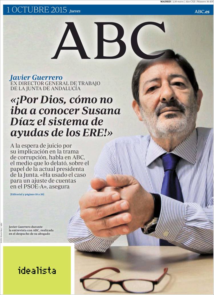 ABC: "Javier Guerreo, exdirector general de Trabajo de la Junta de Andalucía: '¡Por Dios, cómo no iba a conocer Susana Díaz el sistema de ayudas de los ERE!".