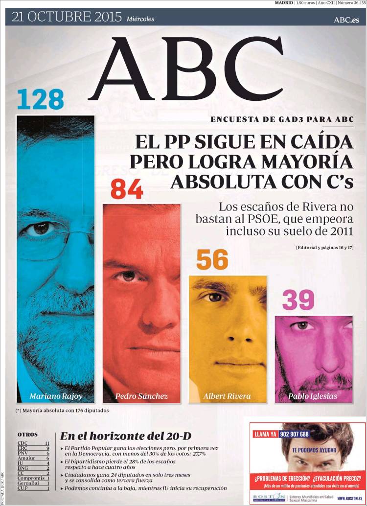 ABC: "El PP sigue en caída pero logra mayoría absoluta con C's".