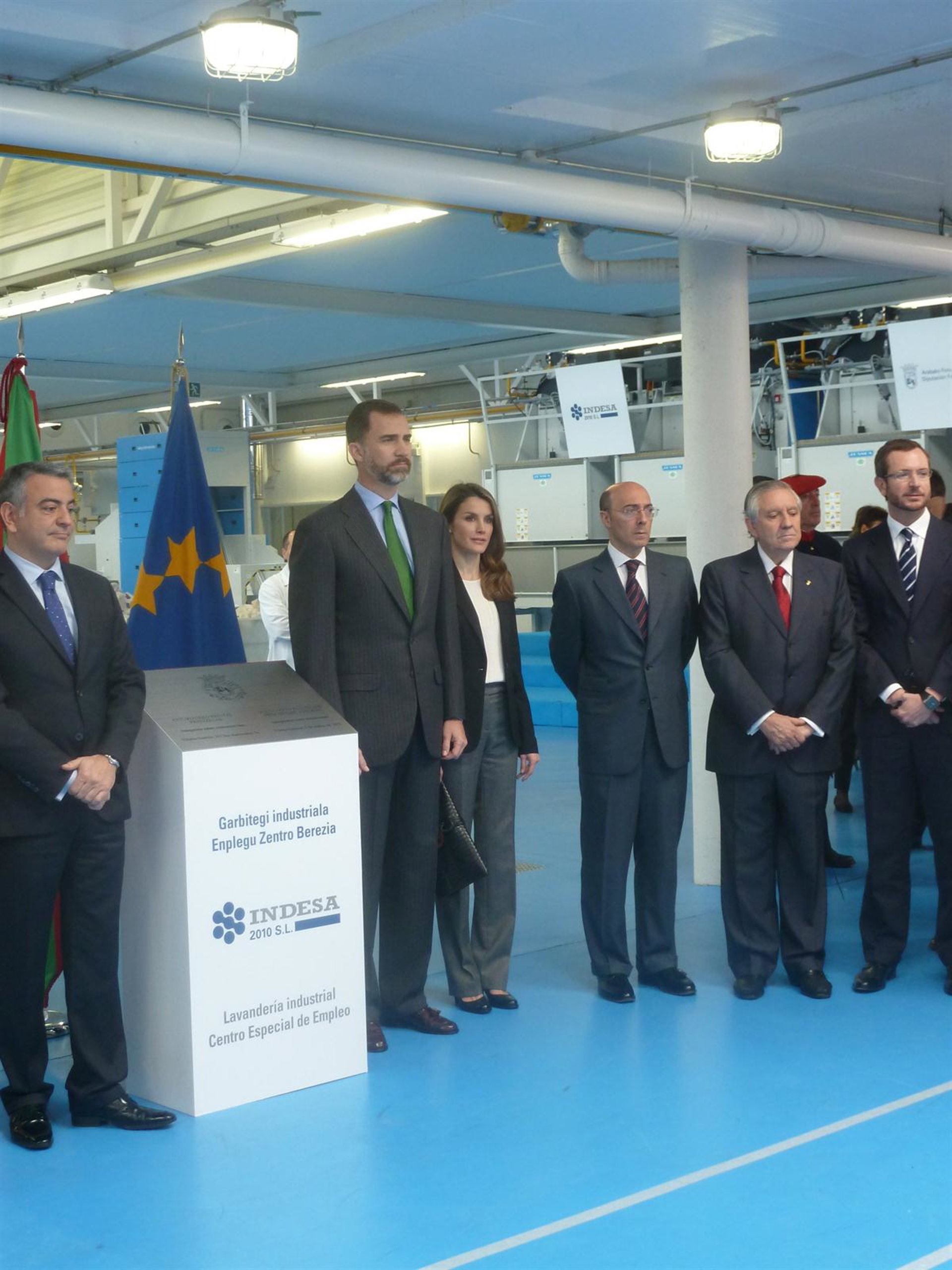 Los Príncipes de Asturias han inaugurado la nueva lavandería industrial de Indesa, la sociedad de la Diputación foral de Álava que emplea a personas discapacitadas. La lavandería, ubicada en el polígono de Júndiz de Vitoria, da trabajo a 35 personas con discapacidad, pero se estima que, a medio plazo, la plantilla se amplíe hasta los 70 trabajadores.