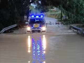 Coche de la Policía Local de Alicante en un camino anegado por la lluvia - AJUNTAMENT D'ALACANT - Archivo