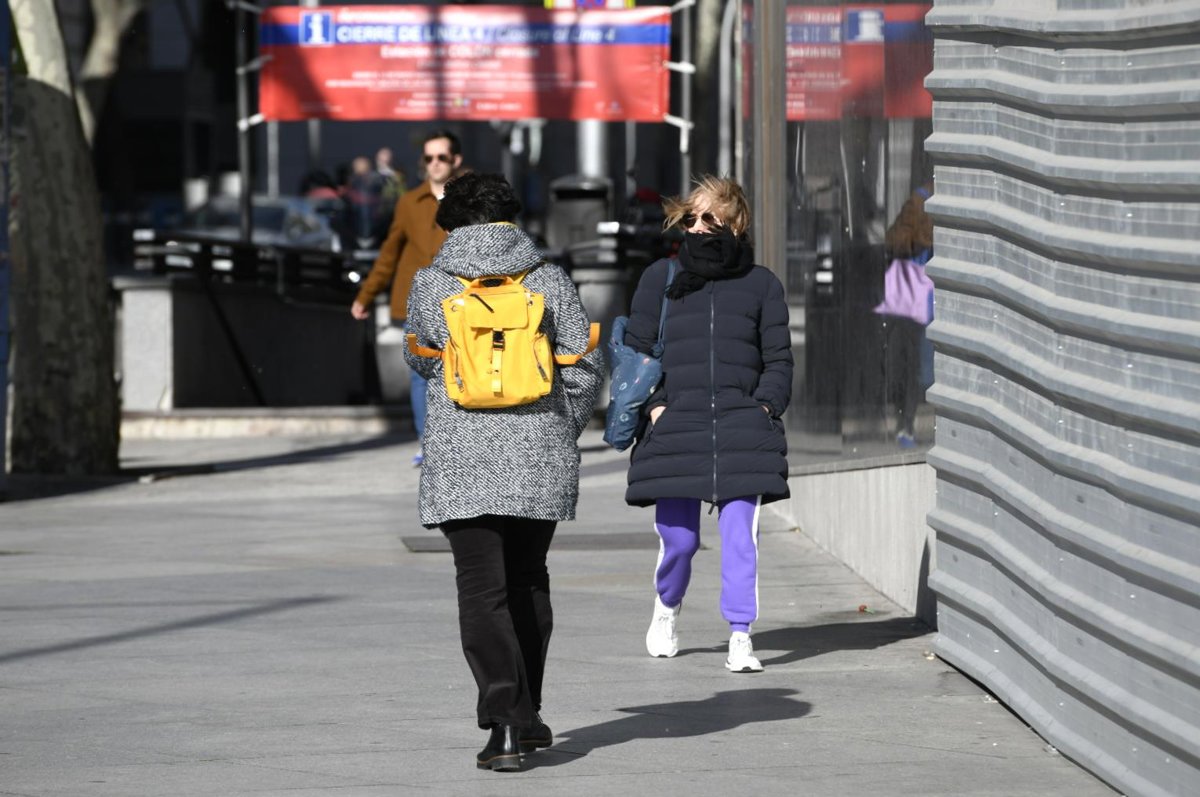 Tres personas caminan por Madrid con la presencia de la borrasca Jorge que desde el sábado se hace notar en la península dejando rachas muy fuertes de viento, lluvias y un frente frío, en Madrid (España), a 2 de marzo de 2020. - Óscar Cañas - Europa Press