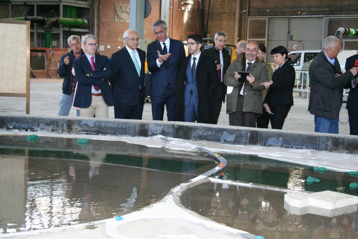 El CEDEX realiza ensayos en el Laboratorio de Hidráulica sobre el modelo físico a escala de la localidad de Andújar y los asistentes han comprobado las consecuencias simuladas de una inundación.