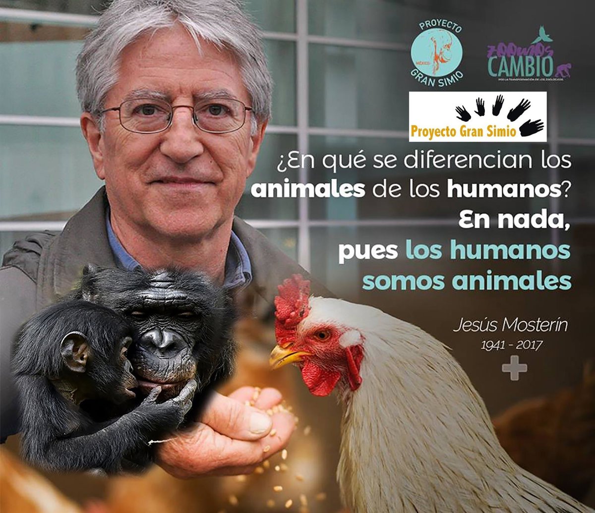 Proyecto Gran Simio lamenta el fallecimiento del filósofo defensor de los animales y presidente honorífico de la asociación desde su fundación en 1999, Jesús Mosterín, que murió este 4 de octubre, coincidiendo con el Día Internacional de los Animales.