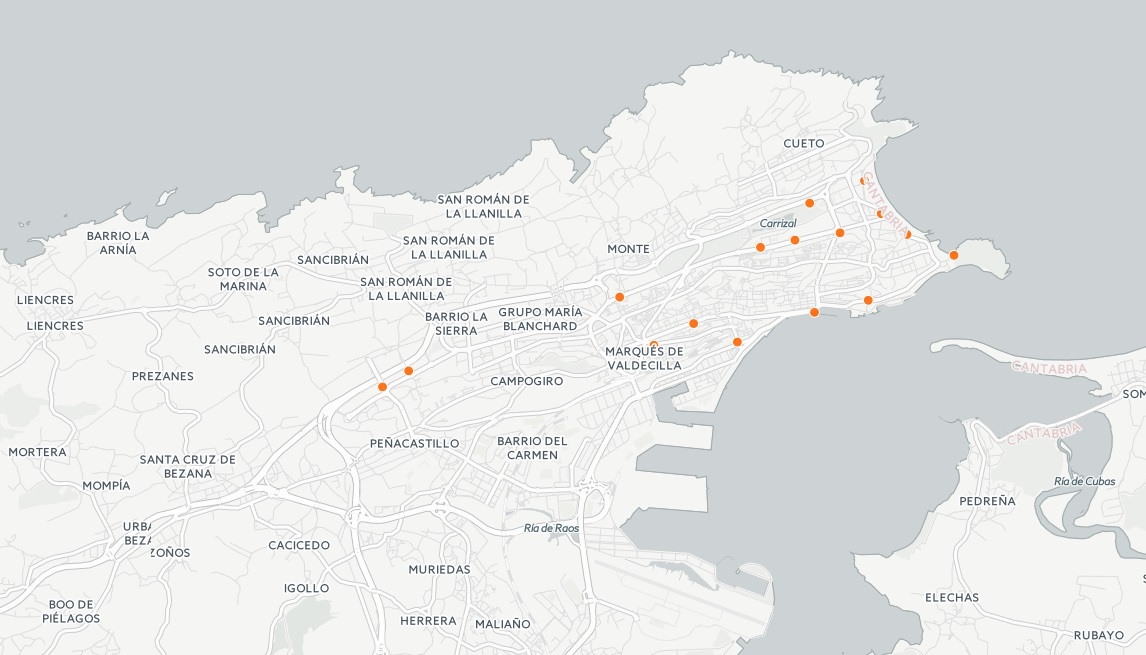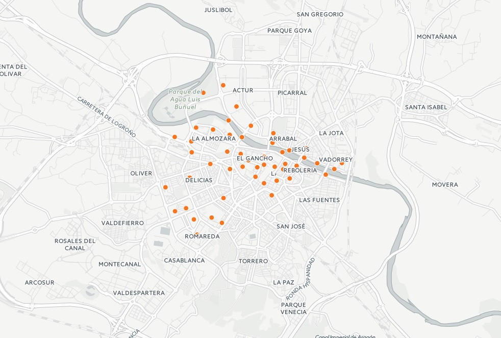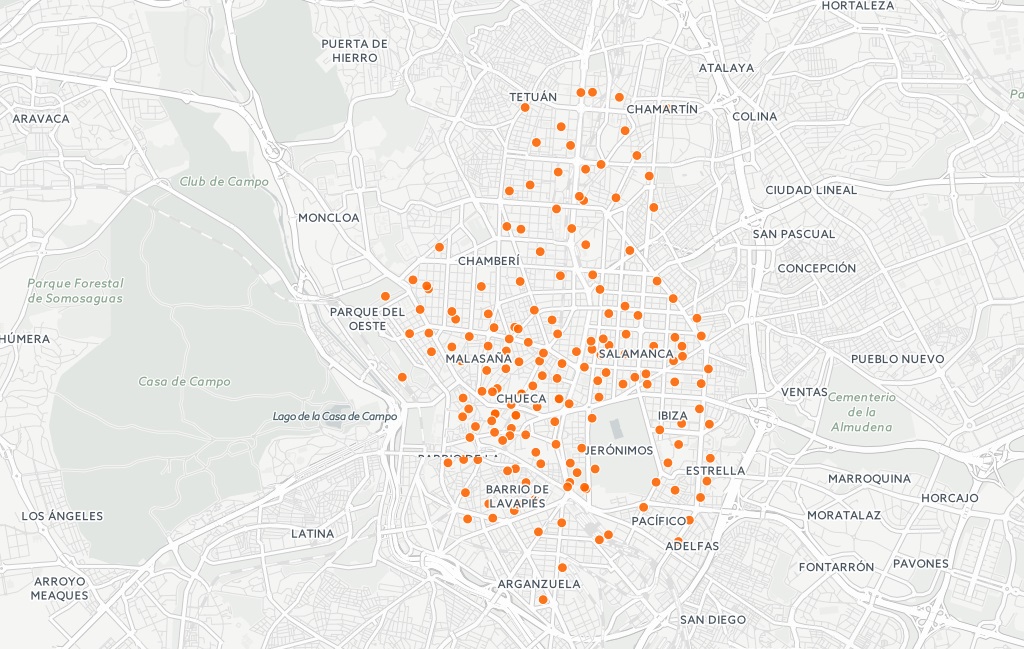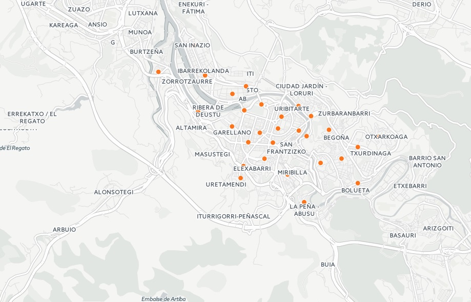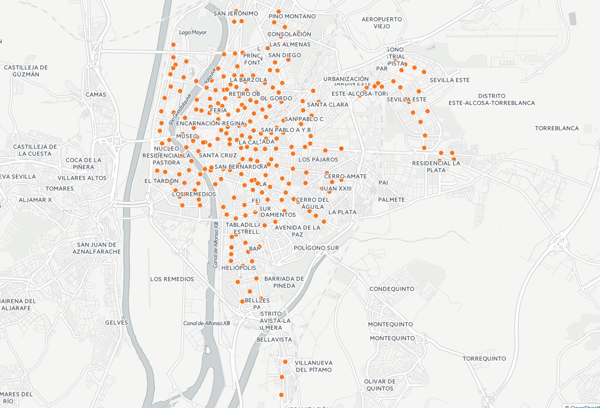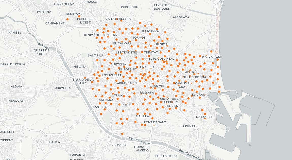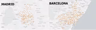 Utiliza el zoom para ver los puntos de alquiler de bicicletas detallados en cada ciudad