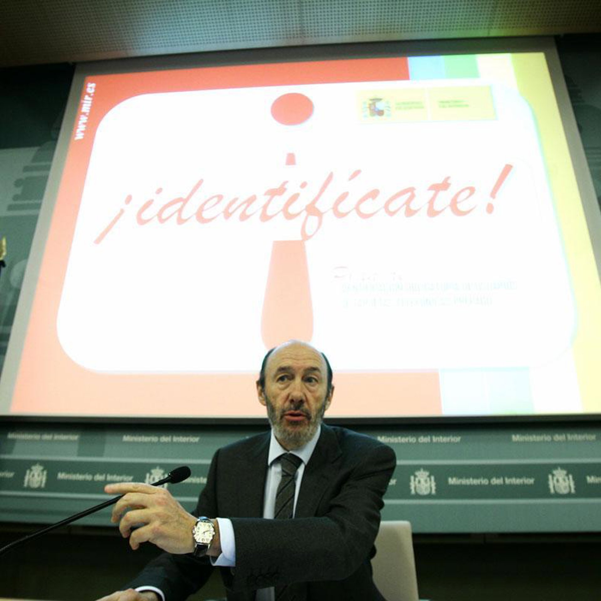 El titular de Interior, Alfredo Pérez Rubalcaba, presentó esta mañana la campaña 'Identifícate', realizada en cooperación con las empresas del sector, consistente en un llamamiento a los dueños de tarjetas prepago para que acudan a los puntos de venta de las compañías con su DNI, pasaporte o tarjeta de identidad de extranjero. En el caso de las tarjetas prepago propiedad de empresas, éstas tendrán que presentar la tarjeta de identificación fiscal.