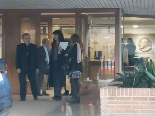 A las 10:50 horas, Redondo salía del edificio acompañada por el presidente de los obispos. Ambos han salido conversando y se han despedido cordialmente antes de que la ministra se montase en el coche oficial, que la esperaba bajo los soportales resguardado de la lluvia.