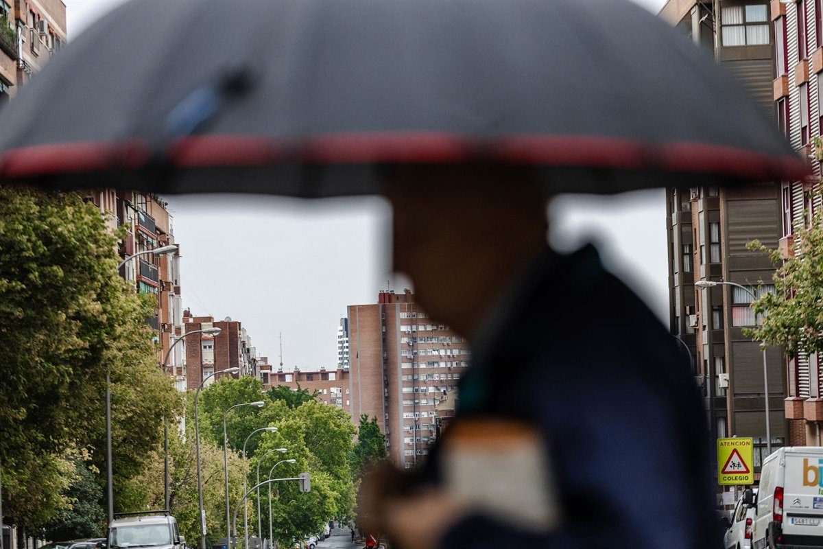 Una persona camina bajo la lluvia, a 2 de septiembre de 2023, en Madrid (España). La llegada de una DANA a España, que sucedió ayer 1 de septiembre, ha traído lluvias y un acusado descenso de las temperaturas este fin de semana, cuando las máximas no su - Carlos Luján - Europa Press