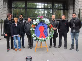 Portavoces de varias entidades estatales y autonómicas han leído un manifiesto y han depositado una corona de flores frente al Ministerio en una clara alusión a la desaparición de estas ayudas que suponen, a juicio del presidente de REDVIH, Julio Gómez, un "paso atrás", que afecta directa e indirectamente a toda la sociedad.