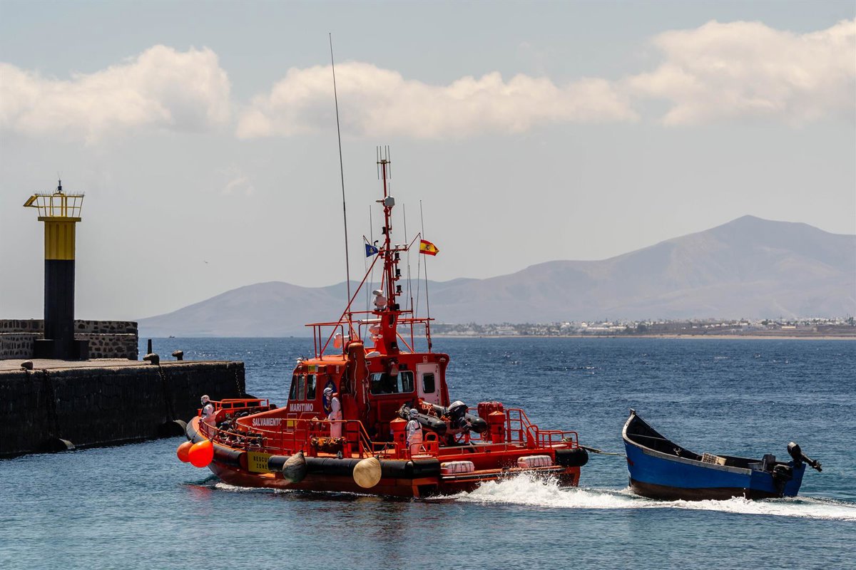 Archivo - Un barco de Salvamento Marítimo, a su llegada al Muelle de La Cebolla en Lanzarote en una foto de archivo. - Europa Press - Archivo
