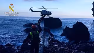 A las 07.45 horas de hoy, el helicóptero de la Zona de la Guardia Civil en Canarias (UHEL), procedió a evacuar al accidentado, su acompañante y a todos los intervinientes en el rescate hasta el campo de fútbol de Puerto Santiago, término municipal de Santiago del Teide.