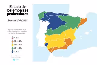 Los embalses almacenan actualmente 35.692 hectómetros cúbicos (hm3) y sitúan a la reserva hídrica al 63,7% de su capacidad total tras la pérdida de 339 hm3 en los últimos siete días (-0,6%). Esta es la cuarta semana consecutiva que los embalses pierden agua, frente a las cuencas catalanas que siguen al alza y alcanzan ya el 37,2% de su capacidad tras el incremento de nueve décimas en la última semana.