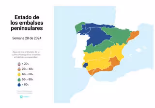Los embalses almacenan actualmente 35.162 hectómetros cúbicos (hm3) de agua y sitúan la reserva hídrica al 62,7% de su capacidad tras la pérdida de 530 hm3 (-0,9%) en los últimos siete días. Esta es la quinta semana consecutiva en la que los embalses pierden agua, frente a las cuencas catalanas que siguen al alza y alcanzan ya el 37,4% de su capacidad tras el incremento de dos décimas en la última semana.