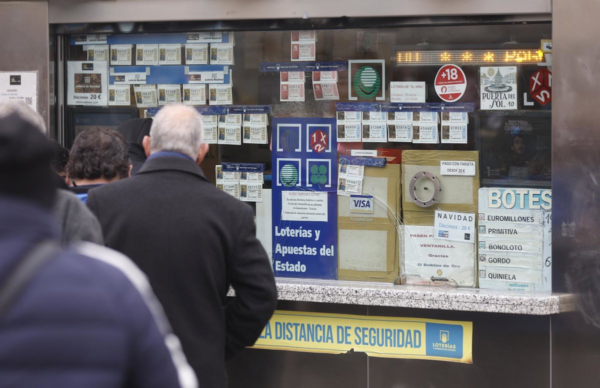 Varias personas en una administración de lotería de Navidad de la Puerta del Sol. - Eduardo Parra - Europa Press
