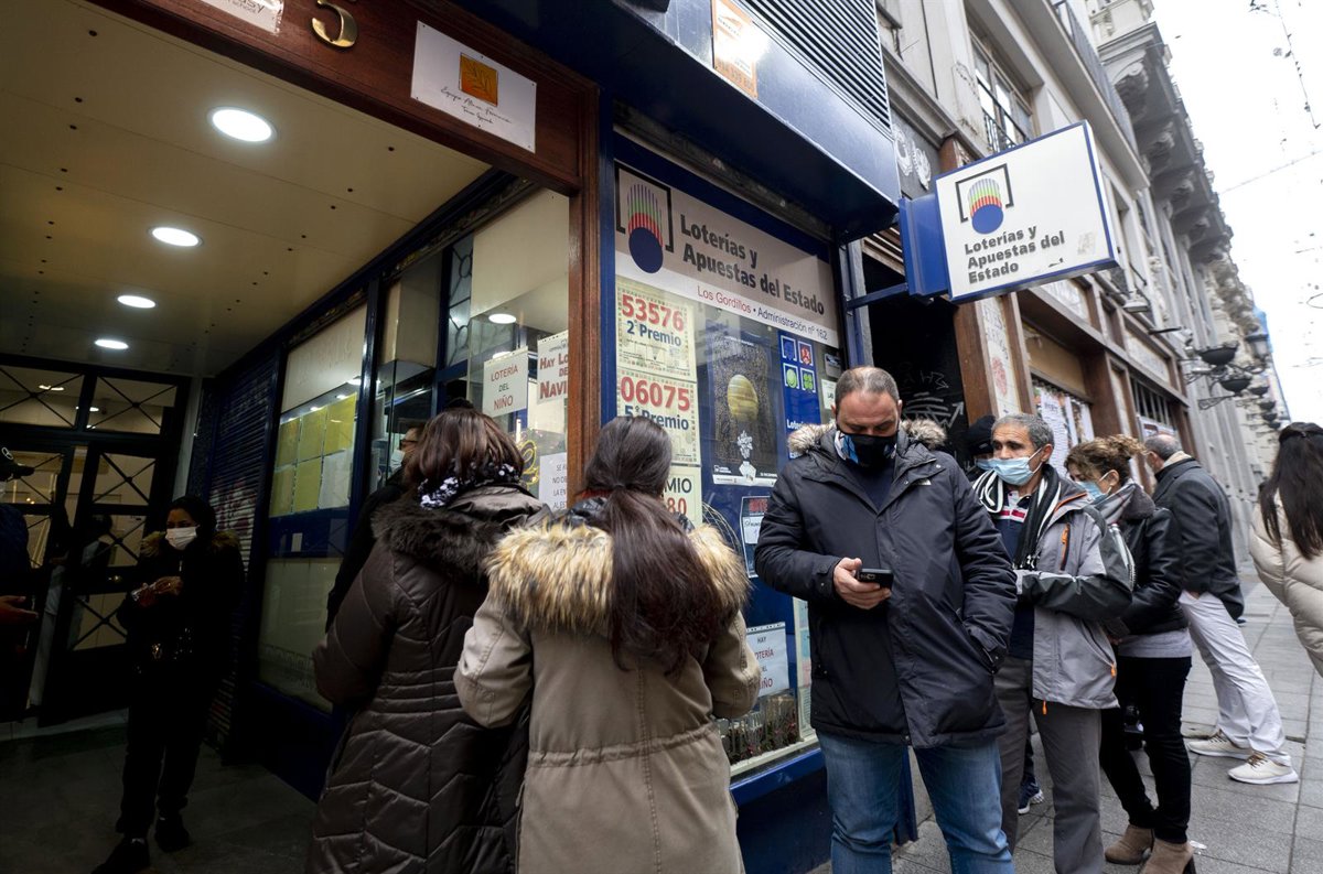 Varias personas hacen cola en una administración de Loterías del centro de Madrid. - Alberto Ortega - Europa Press