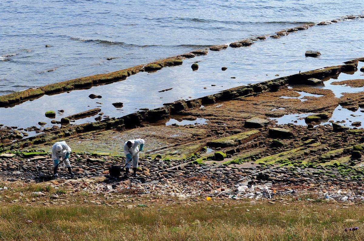 Los trabajos de limpieza del vertido llegado al litoral de Algeciras (Cádiz), a cuenta de la deflagración de dos depósitos de agua y aceite usado en el muelle norte del puerto de Gibraltar, siguen "con normalidad" en las playas de El Rinconcillo, La Concha, Chinarral y Getares.