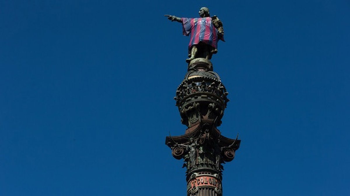 El monumento, ubicado entre La Rambla y el Puerto de Barcelona, fue escogido como punta de lanza de la presentación de las nuevas equipaciones del FC Barcelona.