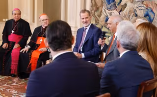 El Rey Felipe VI ha recibido este viernes al cardenal arzobispo de Madrid y vicepresidente de la Conferencia Episcopal Española (CEE), Carlos Osoro, y al nuncio del Papa en España, Bernardito Auza, junto a una representación de la red neoyorkina sin ánimo de lucro SOMOS Community Care.
