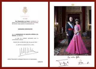 Tras comunicarlo a la Casa Real y tras remitir toda la documentación que se solicitó desde Zarzuela, el día 14 de junio de 2022 se recibió una misiva de la Casa de Su Majestad el Rey en la que se comunicaba que Sus Majestades los Reyes Felipe y Letizia aceptaban los nombramientos, remitiéndose asimismo las credenciales que certifican ambos nombramientos, ha informado la Hermandad en un comunicado.