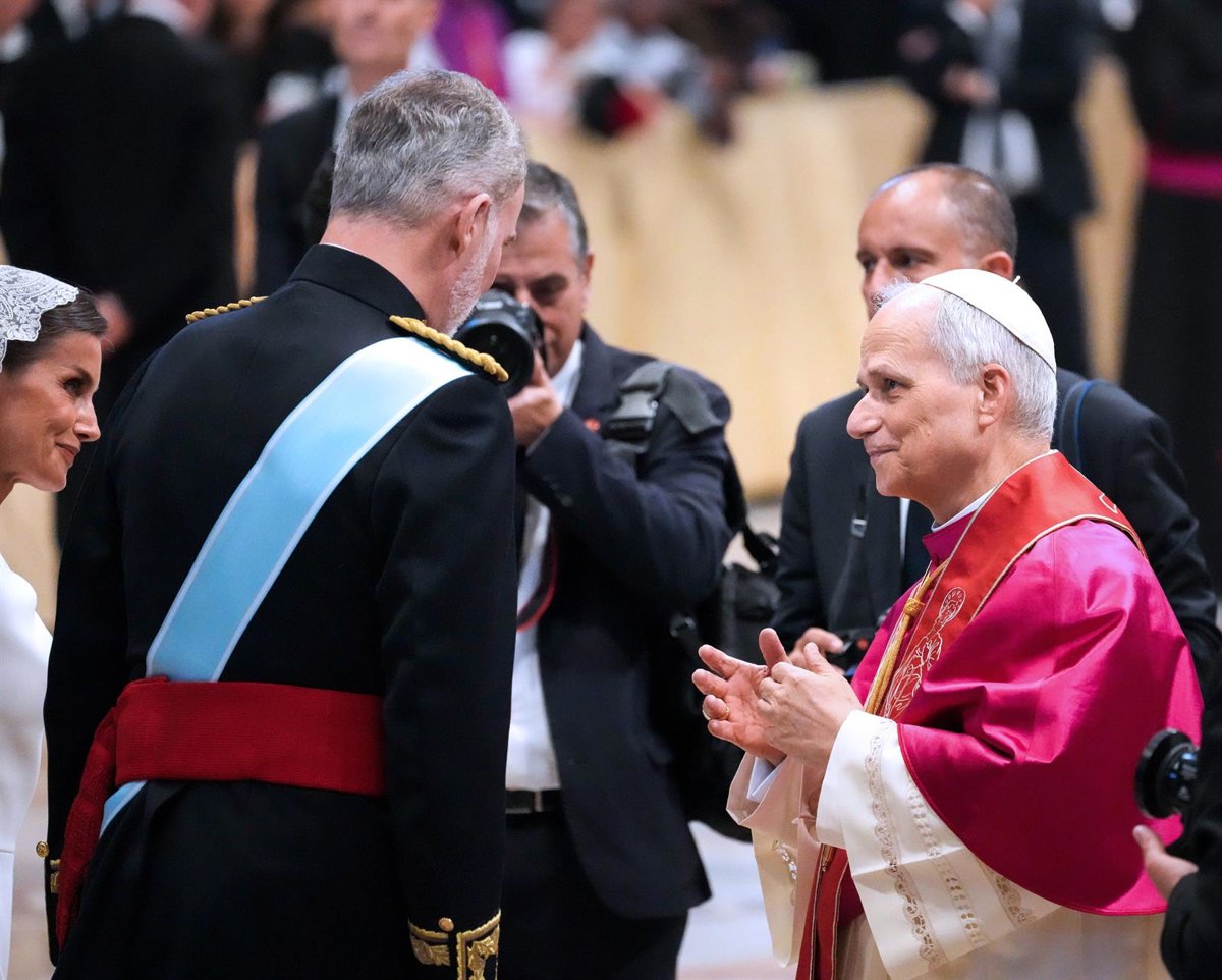 Archivo - La Reina Letizia y el Rey Felipe VI saludan al Papa León XIV tras la misa de inicio de su Pontificado. - Stefano Spaziani - Europa Press - Archivo