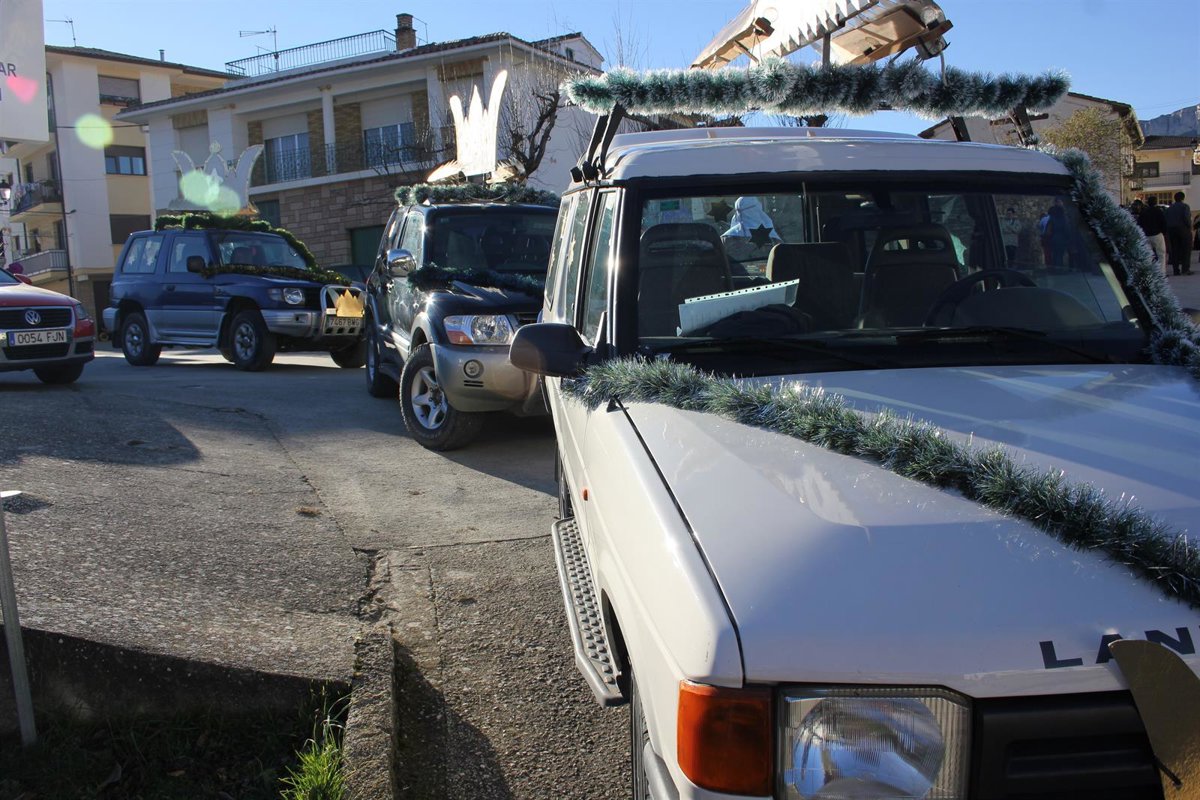 Al principio, Baltasar, Gaspar y Melchor utilizaban camiones para desplazarse con los regalos --ya habían cambiado los camellos por estos vehículos más cómodos--, pero debido a la dificultad para atravesar algunas calles, cambiaron los furgones por tres todoterrenos que cada año arrancan rematados con tres coronas elaboradas por unos carpinteros del valle.