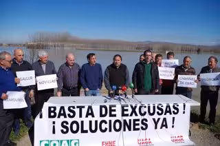 La Coordinadora de Organizaciones de Agricultores y Ganaderos, COAG Valle del Ebro, que integran UAGA Aragón, UAGA Álava, UAGR de La Rioja y EHNE de Navarra, han exigido "la compensación del cien por cien de los daños" ocasionados por la avenida extraordinaria del Ebro, que aseguran ha afectado a unas 45.000 hectáreas de cuatro comunidades autónomas, con unas pérdidas estimadas en 50 millones de euros.