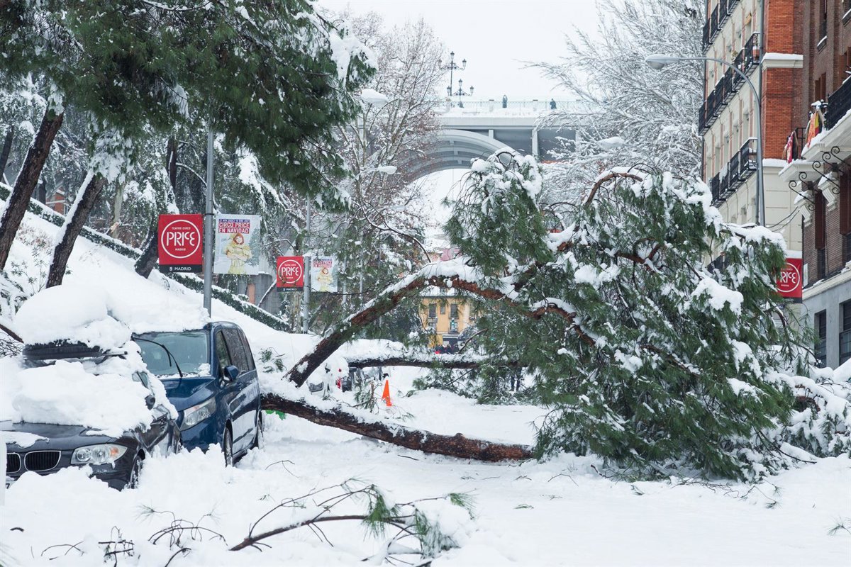 Archivo - Un vehículo aplastado por un árbol durante la gran nevada provocada por la borrasca Filomena, en Madrid. - Irina R.H. - Europa Press - Archivo