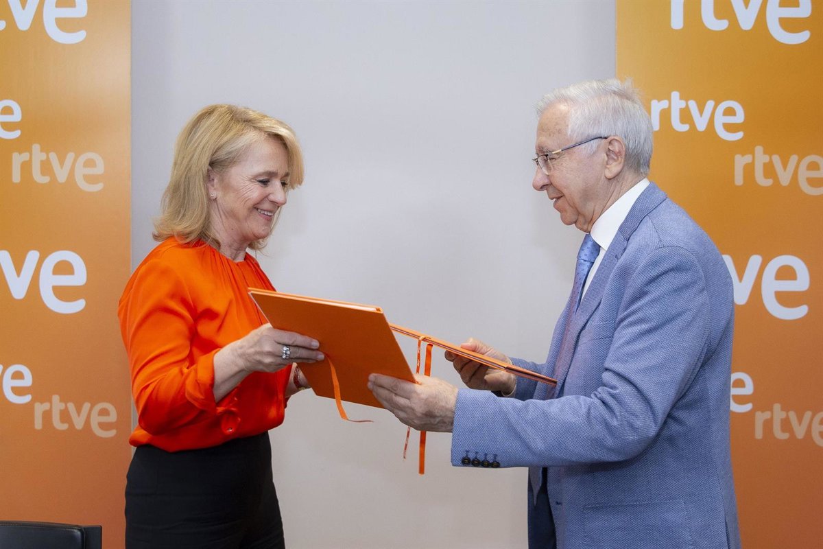 La presidenta interina de RTVE,Elena Sánchez Caballero, y el presidente de la Plataforma de Mayores y Pensionistas, Lázaro González García,han firmado este martes un convenio de colaboración para poner en marcha iniciativas que promuevan la plenitud de los derechos y la mejora de las condiciones de vida de este colectivo.