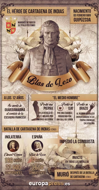 El 3 de febrero se cumplen 330 años del nacimiento del Almirante Blas de Lezo, conocido por su defensa de Cartagena de Indias una de la mayores flotas navales desplegada en la historia por Gran Bretaña.