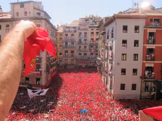 Con el 'pañuelico' rojo ya anudado al cuello, los pamploneses y visitantes se adentran en nueve días de fiesta y desenfreno. Este domingo será el día grande, festividad de San Fermín, y tendrá lugar la procesión en honor al santo por las calles del casco antiguo de la ciudad.