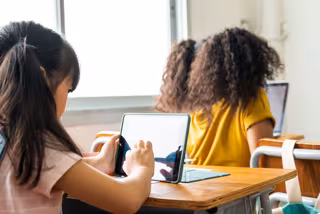 Alumnas de primaria utilizando dispositivos digitales en el aula - GETTY IMAGES