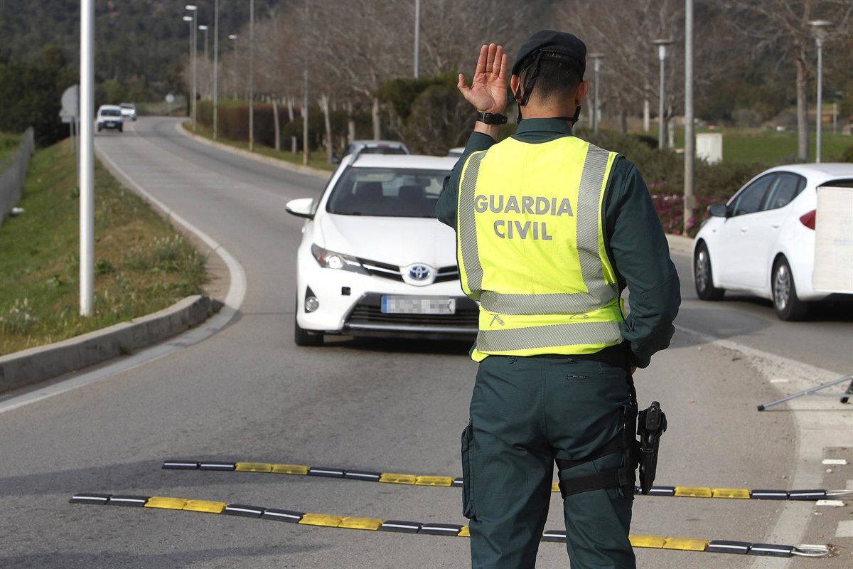 Un agente de la Guardia Civil durante un control rutinario de carretera en la zona de Magaluf (Calvi) en Palma de Mallorca (España), a 6 de marzo de 2021. El pasado 3 de marzo, entraron en vigor medidas para la desescalada en Mallorca, como la reapertu - Isaac Buj - Europa Press