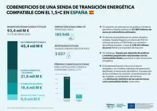 Para llegar a la cifra de 94.000 millones ahorrados para 2030, el informe tuvo en cuenta un crecimiento del PIB de 45.500 millones, un ahorro de recursos de 18.400 millones, una mejora de la salud cifrada en 9.000 millones y un ahorro energético de 21.600 millones, que se sumarían a los 90.700 millones previstos en el Plan Nacional Integrado de Energía y Clima (PNIEC) al reducir la importación de combustibles fósiles.