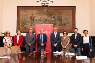 También han asistido José Muñiz, rector de la Universidad Nebrija; Gregorio Martínez, director de Relaciones Institucionales de la Universidad Nebrija; Marta Perlado, decana de la Facultad de Comunicación y Artes y Marta Saavedra, vicedecana de la Facultad de Comunicación y Artes; Nicolás Grijalba, director del Grado en Comunicación Audiovisual; y Laura Martínez Otón, directora académica del Máster de radio, podcast y audio digital de la Universidad Nebrija.