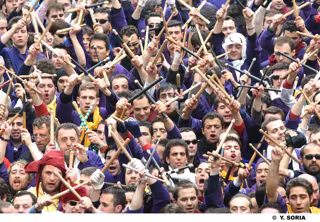 Las Tamboradas transcurren entre el incesante y ensordecedor rugido de los miles de tambores, pudiéndose también apreciar exhibiciones de este tipo "en el redoble y sanos piques" entre peñas por imponer su toque.