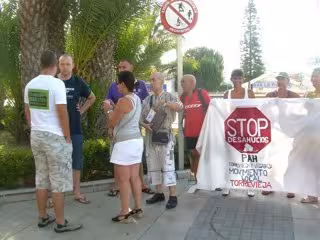 Un grupo de personas del colectivo Stop Deshaucio se han concentrado este viernes ante la sede de una entidad financiera de Torrevieja (Alicante), con la finalidad de que ésta se aviniera a negociar con un vecino que no puede hacer frente al pago de la hipoteca, según ha informado este colectivo en un comunicado.