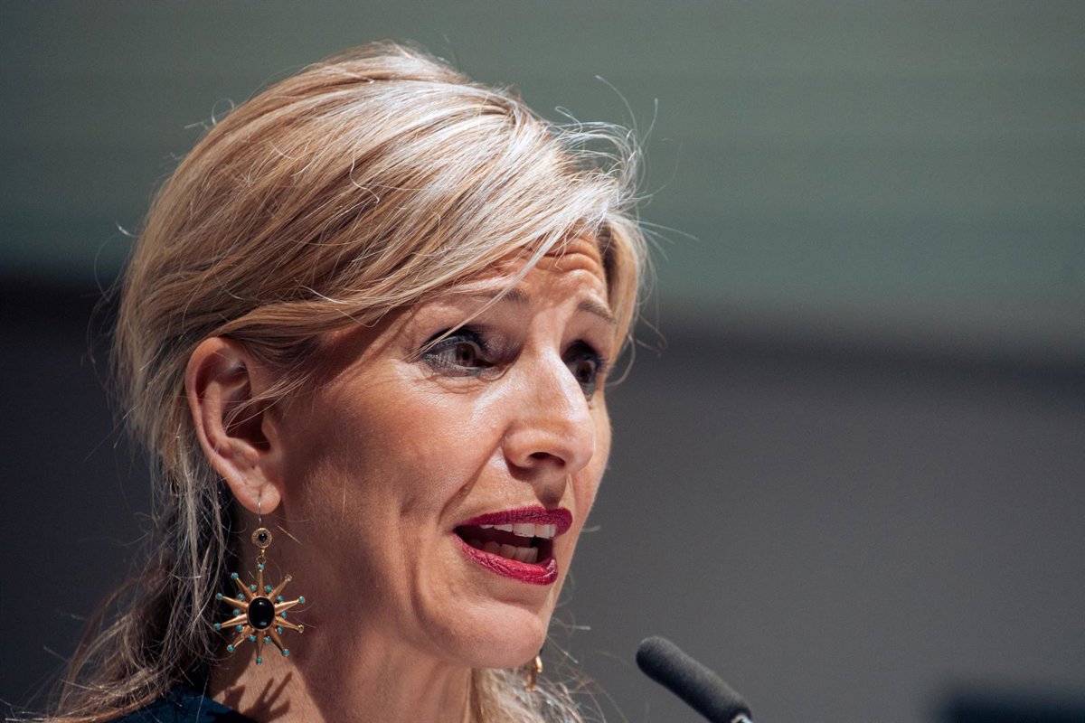 La vicepresidenta segunda y ministra de Trabajo y Economía Social, Yolanda Díaz, interviene durante la gala La Noche de la Construcción de la I Edición de los Premios Confederación Nacional de la Construcción (CNC) 2023, en CaixaForum Madrid, a 21 de - Gabriel Luengas - Europa Press