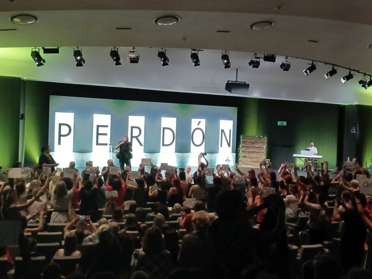 "Verdad, justicia y reparación. Ni olvido ni perdón". Así lo han gritado durante cerca de diez minutos sin descanso las varios cientos de mujeres que han asistido al acto de perdón organizado por la Conferencia Española de Religiosos (CONFER) y celebrado este lunes en la Fundación Pablo VI, en Madrid, mientras mostraban en alto carteles en los que se podía leer "no".