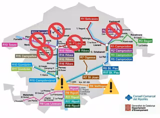 En la línea de Vallfogona de Ripollès, el servicio de Secundaria se ha suspendido inicialmente pero los alumnos se han podido trasladar con el primer servicio regular de bus del Consell Comarcal, y los alumnos de Primaria no se han visto afectados porque están escolarizados en el mismo municipio.