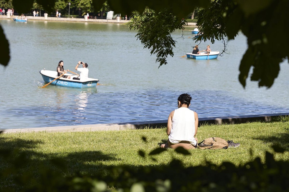 Archivo - Ciudadanos se refrescan en el parque del Retiro, a 27 de mayo de 2025, en Madrid (España). - Jesús Hellín - Europa Press - Archivo
