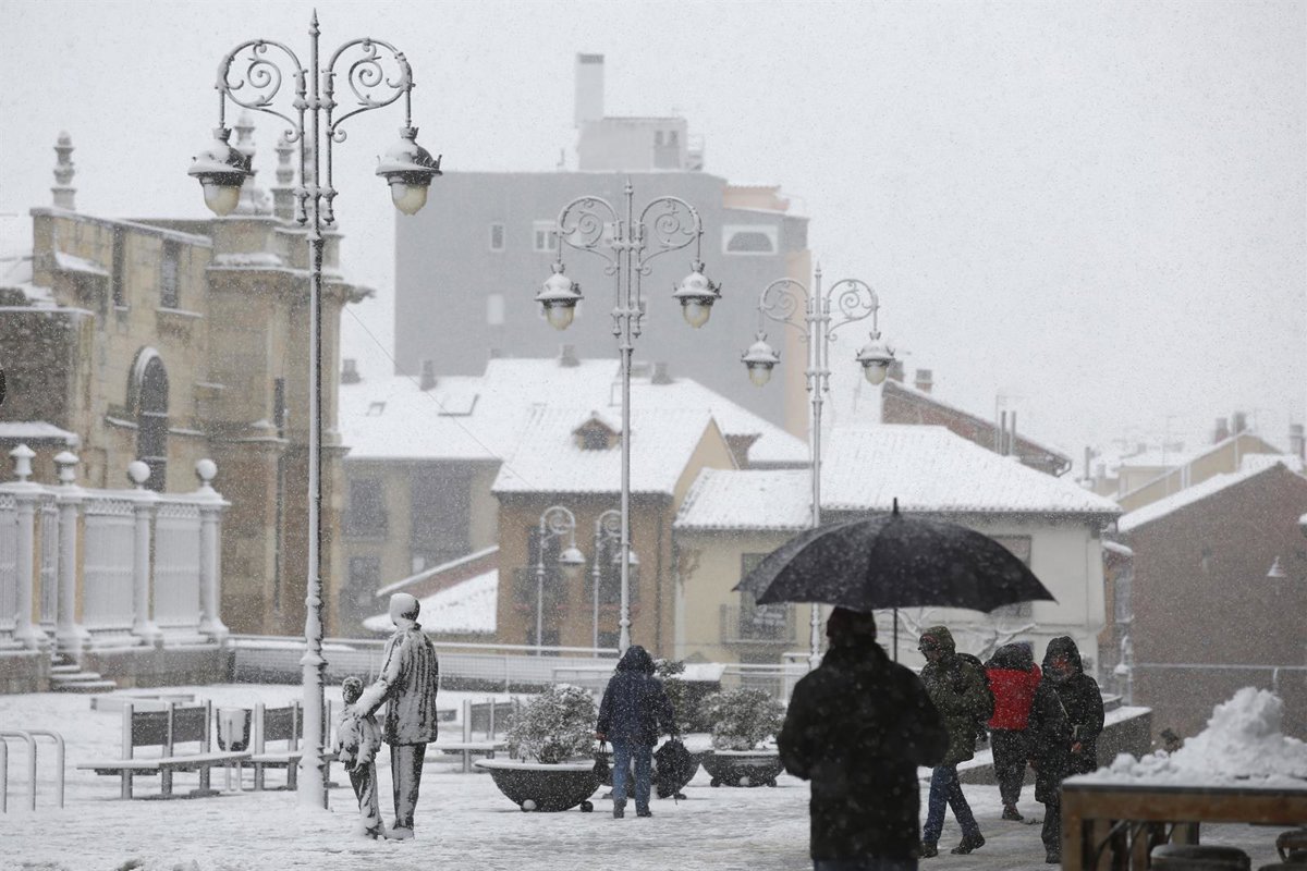 Varias personas pasean por la calle mientras nieva, a 18 de enero de 2023, en León, Castilla y León (España). La Agencia Estatal de Meteorología (Aemet) ha activado la alerta naranja en las zonas de la Cordillera Cantábrica y el Bierzo. En la montaña se - Fernando Otero - Europa Press
