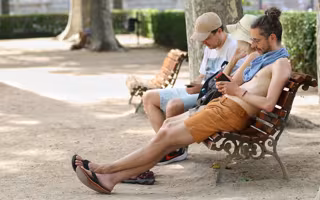 Tres personas descansan en un banco, a 19 de mayo de 2022, en Madrid (España). - Eduardo Parra - Europa Press