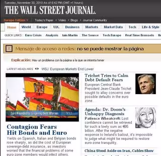 El diario 'The Wall Street Journal' ha ilustrado un su página web una noticia sobre la crisis en España y otros países europeos con un video en el que pueden verse varias banderas preconstitucionales mientras un especialista comenta la situación en la eurozona.