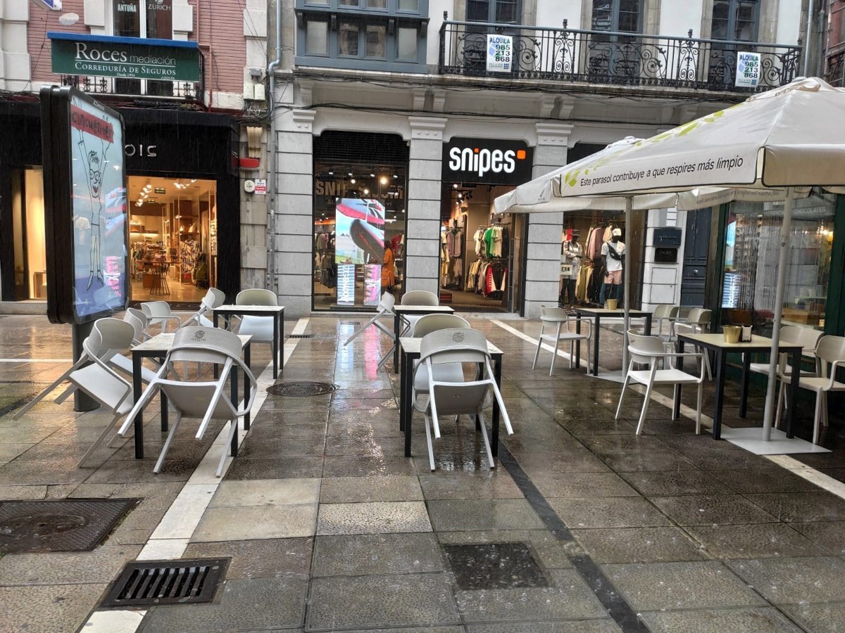 Terrazas vacías por la lluvia en las calles de Oviedo - EUROPA PRESS