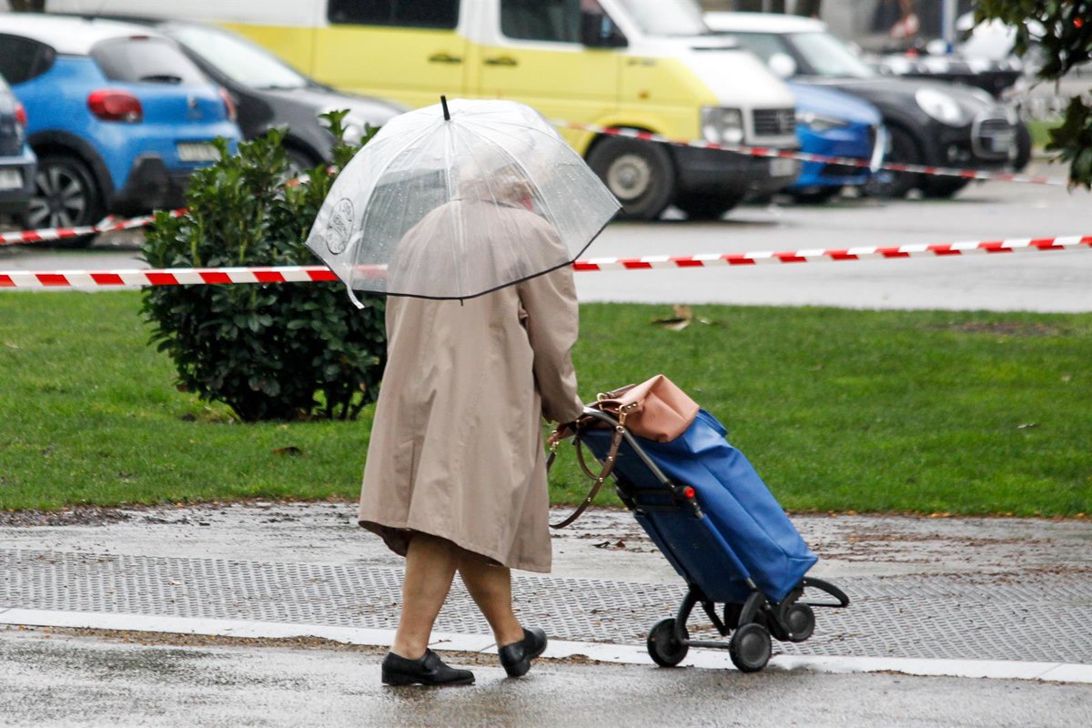 Una mujer se protege de la lluvia de Madrid durante el sexto da del estado de alarma por coronavirus, en Madrid (Espaa) a 21 de marzo de 2020. - Óscar J.Barroso - Europa Press