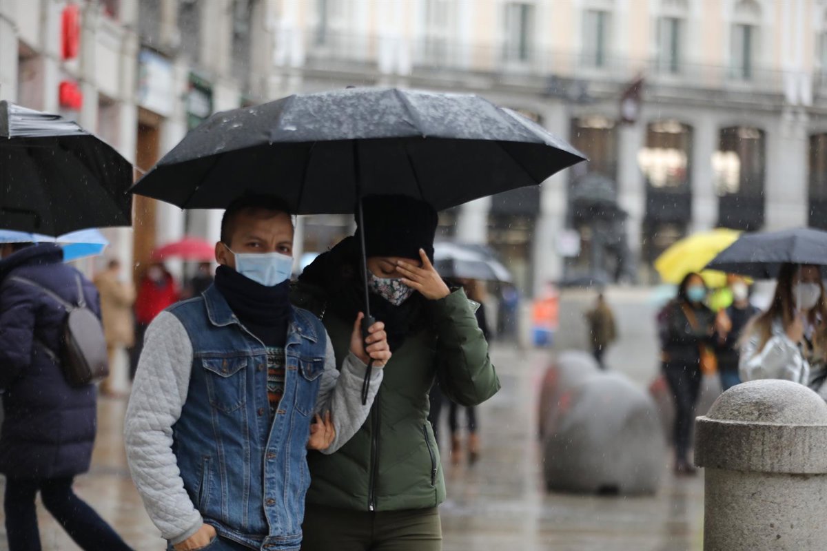 Archivo - Transeúntes pasean protegidos con paraguas por el centro de la capital, en Madrid, (España), a 27 de noviembre de 2020. El año hidrológico, que comenzó el 1 de octubre, acumula hasta el 24 de noviembre un 16 por ciento menos lluvias de lo norm - Marta Fernández Jara - Europa Press - Archivo