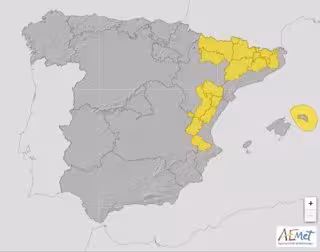 En concreto, el aviso amarillo por lluvias afectará a Teruel, Barcelona, Gerona, Lérida, Castellón y Valencia, mientras que el riesgo por tormentas se ha activado únicamente para la provincia de Valencia, especialmente en el interior.