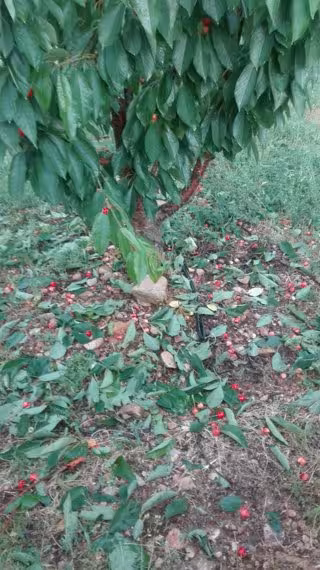 Un cerezo afectado por la tormenta caída este domingo en la Comarca de Calatayud. - UAGA