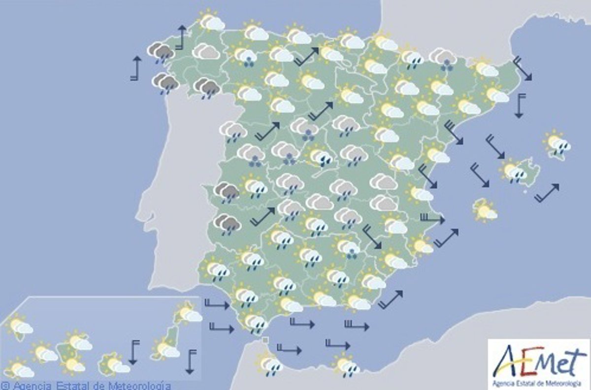 El cielo amanecerá con intervalos nubosos en toda la Península y en las Islas Baleares, aunque no se descarta alguna precipitación débil que tendrá menos probabilidad en el litoral del Levante. La excepción estará en el Cantábrico y en los Pirineos que tendrán un cielo nuboso o cubierto de precipitaciones.